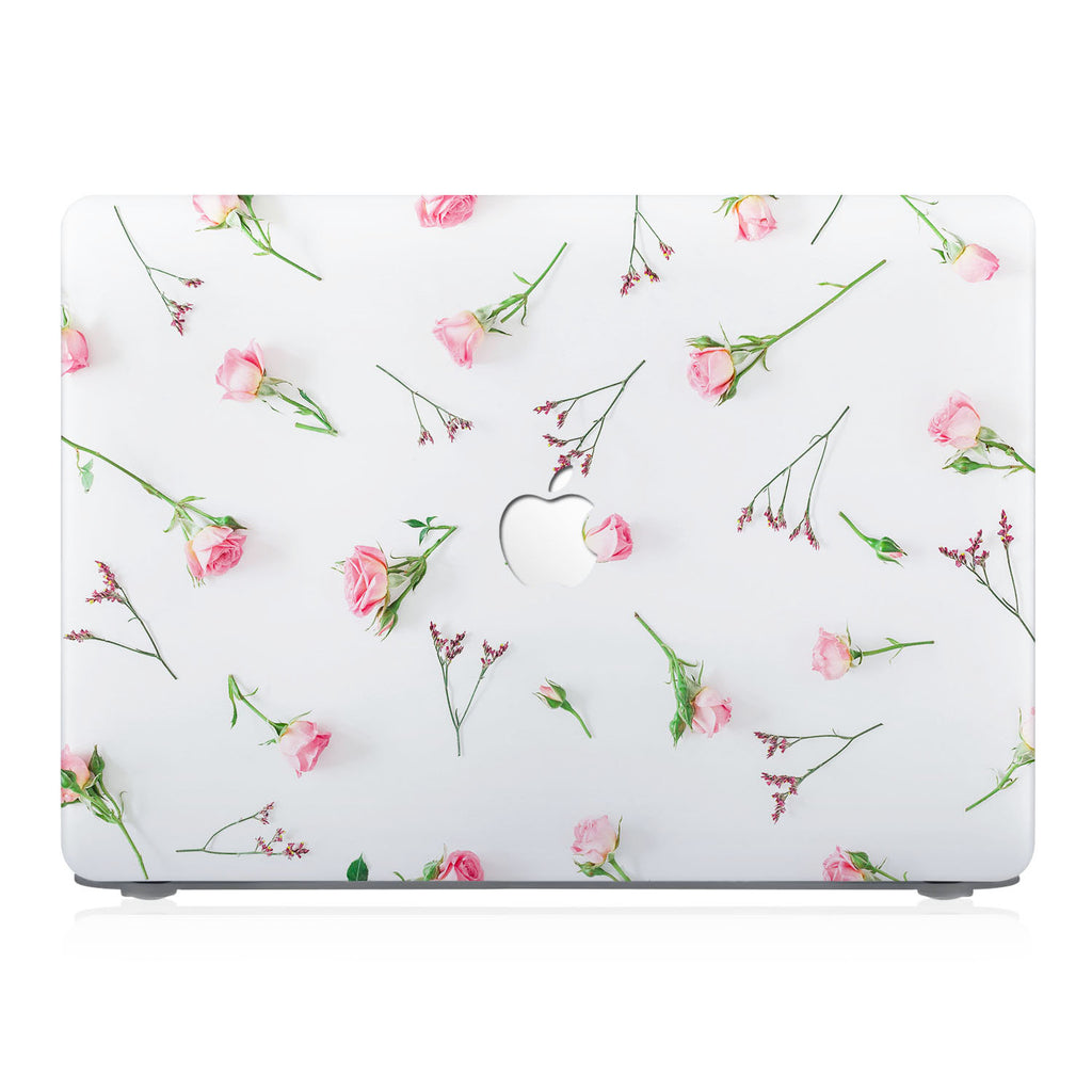 " A contemporary Personalized Macbook Case featuring delicate willowy stems of dainty leaves in soft pink and green. This pattern is a chic alternative to oversized floral prints; the slender trailing stems elegantly convey the beauty of nature and the joys of springtime. This is a tasteful design for lovers of fine art. "