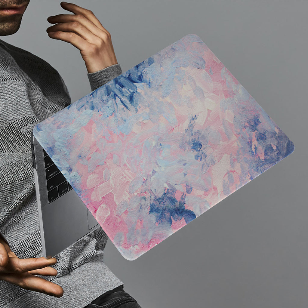 " This is a dreamy Personalized Macbook Case, inspired by the Impressionist artists of old. Pretty pastel shades of rose, blush, and blue are daubed across the entire case in a random manner. The design is abstract but elegant in every brush stroke - perfect for artsy types and fans of whimsical watercolor prints. "